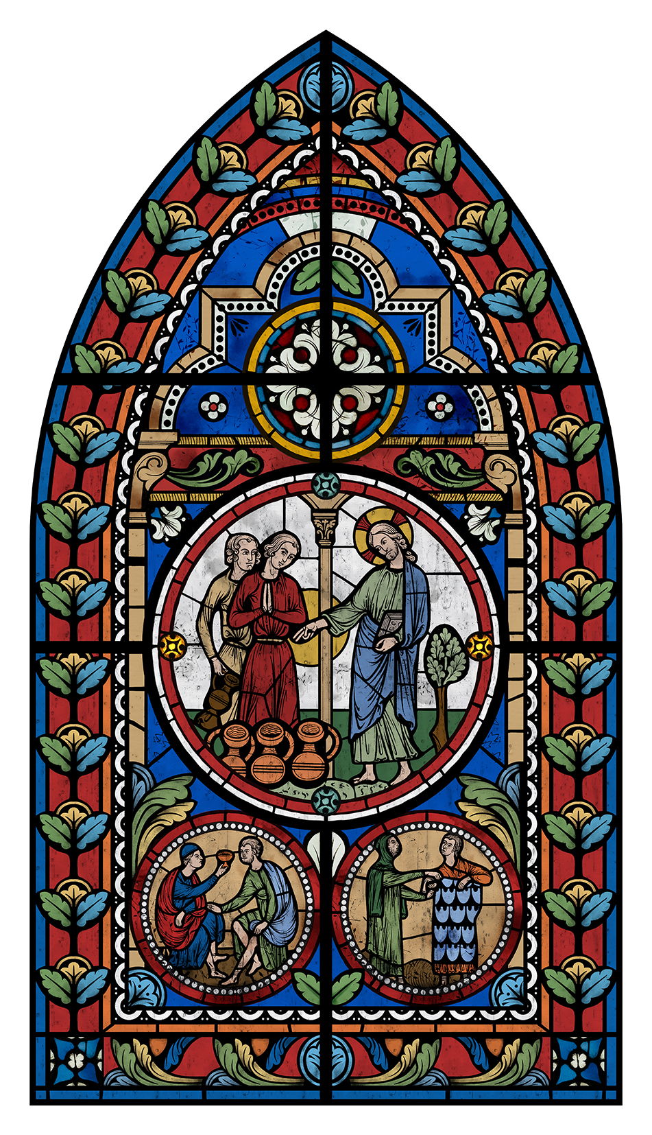 Design of the three large stain glass windows of the St. Mary School chapel (beautifully executed by Laure Pellegrino, master glass artist based in the south of france)